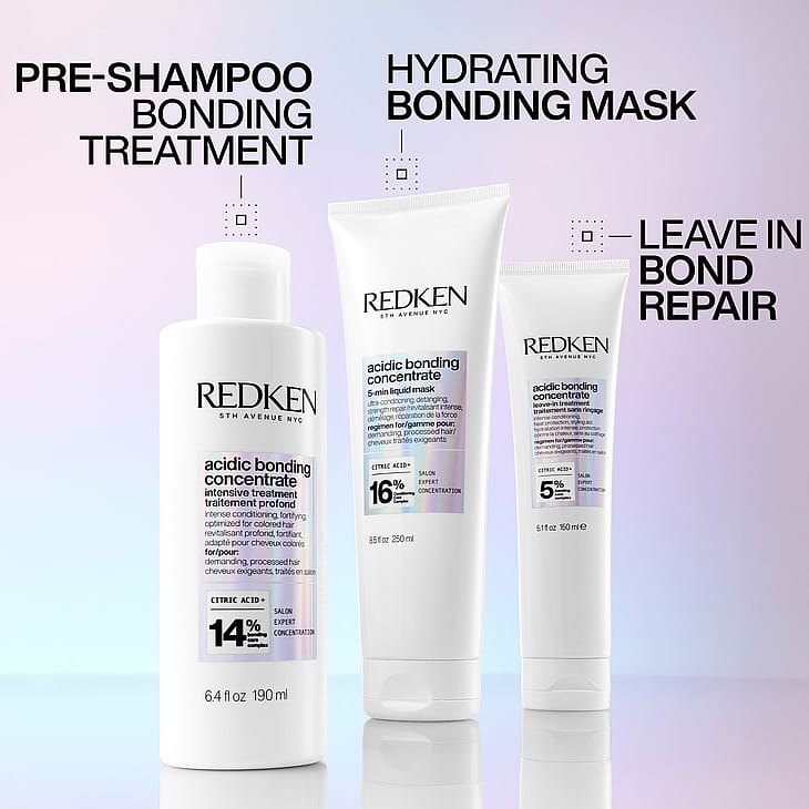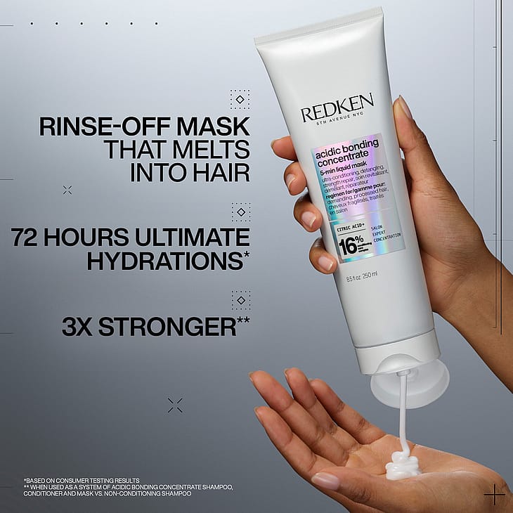 Redken Acidic Bonding Concentrate 5-min hiusnaamio on Redkenin tehokkain all-in-one -koostumus, joka korjaa kaikentyyppisten vaurioituneiden hiusten vahvuutta. Sen 16 %:n hoitavalla care complexilla ja sitrushapolla, Acidic Bonding Concentrate Mask vahvistaa heikkoja sidoksia ja parantaa hiusten kestävyyttä.Taistele vuoden aikaisia näkyviä vaurioita vastaan yhdellä käyttökerralla* nelivaiheisella Redken Acidic Bonding Concentrate -hoitorutiinilla. Ammattimainen koostumus! Redken Acidic Bonding Concentrate 5-Min Mask on Redkenin tehokkain all-in-one-koostumus vahvuuden korjaamiseen ja syvähoitoon, täydellinen kaikentyyppisille vaurioituneille hiuksille. Tämä ylellinen, erittäin hoitava, korjaava hiusnaamio tarjoaa äärimmäisen vahvuuden korjauksen, hiusten helpon selvityksen ja syvähoidon, kaikki vain viidessä minuutissa. Sen 16 %:n hoitavalla care complexilla ja sitrushapolla, Acidic Bonding Concentrate Mask vahvistaa heikkoja sidoksia ja parantaa hiusten kestävyyttä. Tämä pH-arvoa tasapainottava hiusnaamio on kehitetty erityisesti happamalla pH-arvolla taistelemaan hiusten värjäyksen, lämpömuotoiluvälineiden ja jopa veden negatiivisia vaikutuksia vastaan. Lopputulos? Hiukset, jotka näyttävät ja tuntuvat hyvinvoivilta!