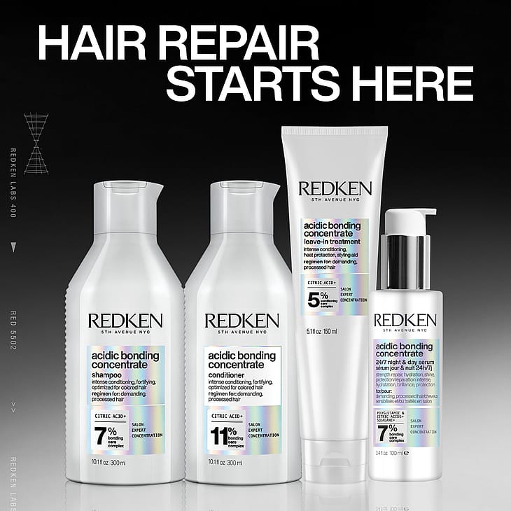 Redken Acidic Bonding Concentrate -hoitoaine on Redkenin tehokkain all-in-one -koostumus, joka korjaa kaikentyyppisiä vaurioituneita hiuksia.Taistele vuoden aikaisia näkyviä vaurioita vastaan yhdellä käyttökerralla* nelivaiheisella Redken Acidic Bonding Concentrate -rutiinilla.