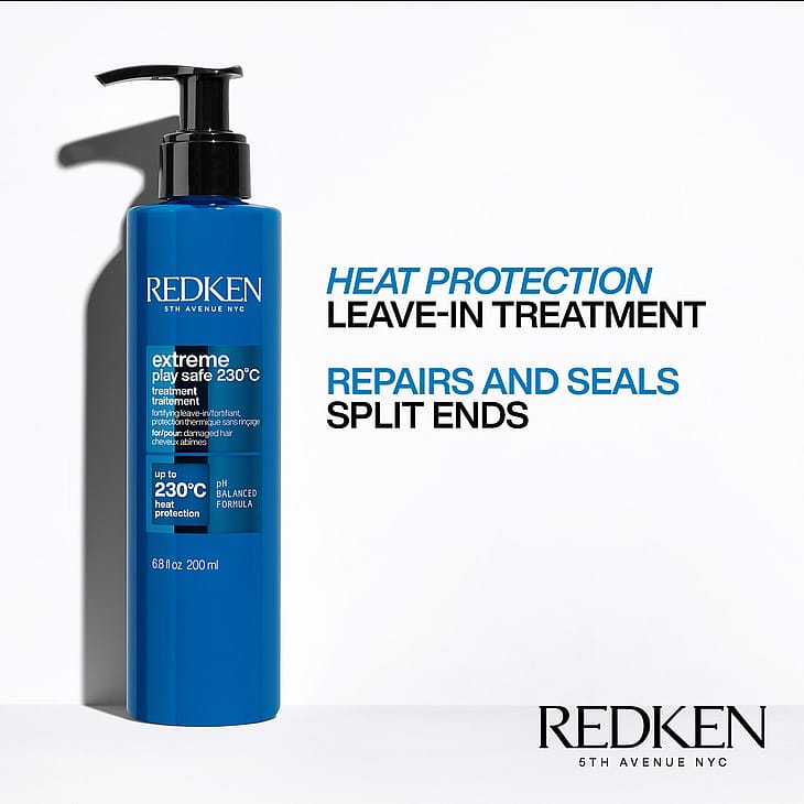 Redken Extreme Play Safe on vahvistava, hiuksiin jätettävä lämpösuojasuihke, joka muuttaa hiusten ulkonäköä näkyvästi. Sisältää lämpösuojan 230 C saakka, samalla korjaten ja sinetöiden haaroittuneita hiuksia.Redken Extreme Play Safe on hiuksiin jätettävä hoitotuote, joka suojaa hiuksia lämmöltä antaen samalla vahvuutta, kaikki hiusten muotoilun aikana. Tämä monen hyödyn, hiuksiin jätettävä hoitotuote sisältää kasviproteiineja ja turmaliinia, jotka suojaavat hiuksia lämmöltä jopa 230°C saakka, samalla auttaen korjaamaan olemassa olevia vaurioita ja vähentämään näkyvästi haaroittuneita latvoja. Tätä tuote sopii täydellisesti kaikille, jotka käyttävät usein lämpöä hiusten muotoiluun (hiustenkuivaaja, suoristusrauta, kiharrin).