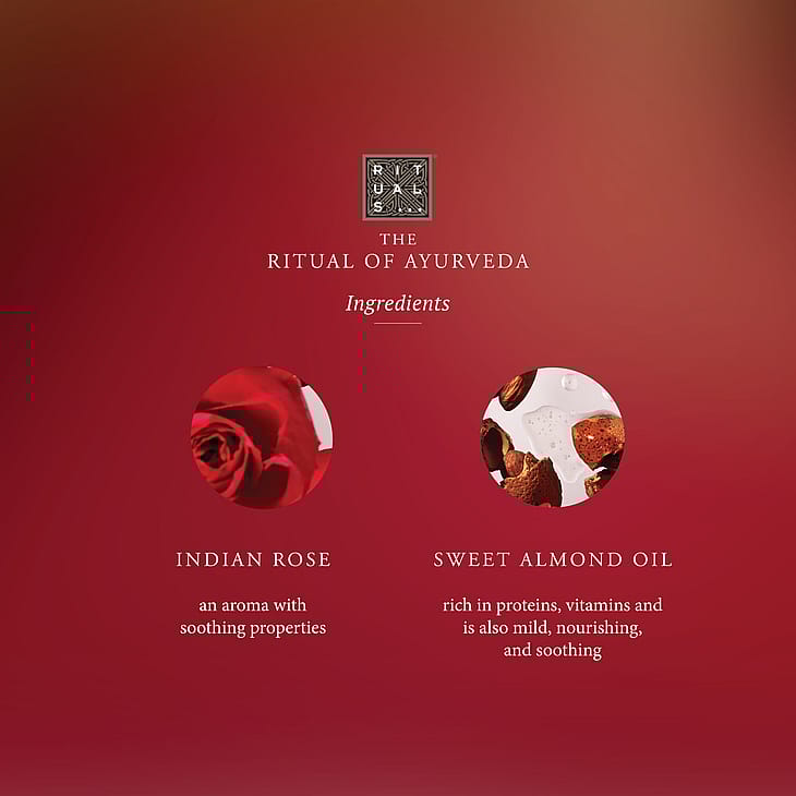 Valaise polkusi sisäiseen harmoniaan tällä ylellisellä tuoksukynttilällä. Tuote pohjautuu autenttisille ayurvedassa käytetyille ainesosille, kuten intianruusulle ja makeamanteliöljylle. Kynttilä kestää jopa 50 tunnin ajan.