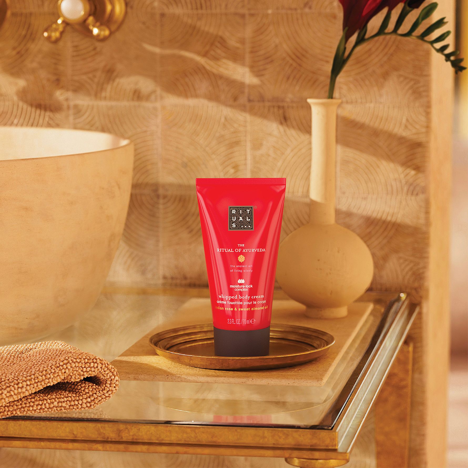 Pidä ihosi pehmeänä, kimmoisana ja hyvän tuoksuisena koko päivän ajan tällä The Ritual of Ayurveda -tuotesarjan ravitsevalla vartalovoiteella.