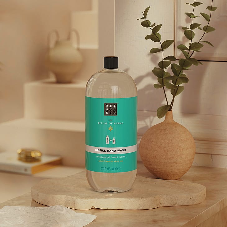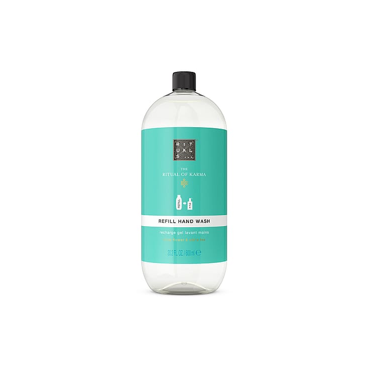 Aika täyttää käsisaippua uudelleen? Tällä 600 ml:n täyttöpakkauksella saat täytettyä Ritualsin ylellisen käsisaippua-annostelijan kahdesti.