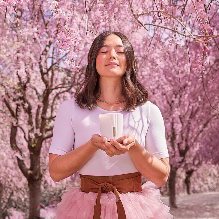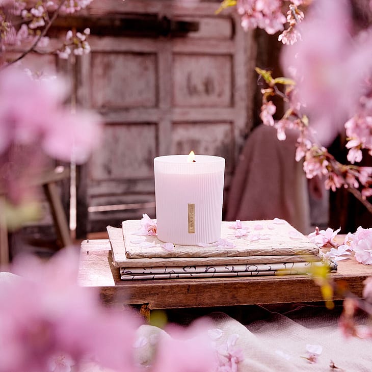 Valaise tiesi uuteen alkuun tämän ylellisen tuoksukynttilän saattelemana. Kynttilän pohjana ovat kirsikankukan ja luomuriisimaidon uudistavat tuoksut. Se on valmistettu 70-prosenttisesti luonnollisesta vahasta ja se kestää jopa 50 tuntia.