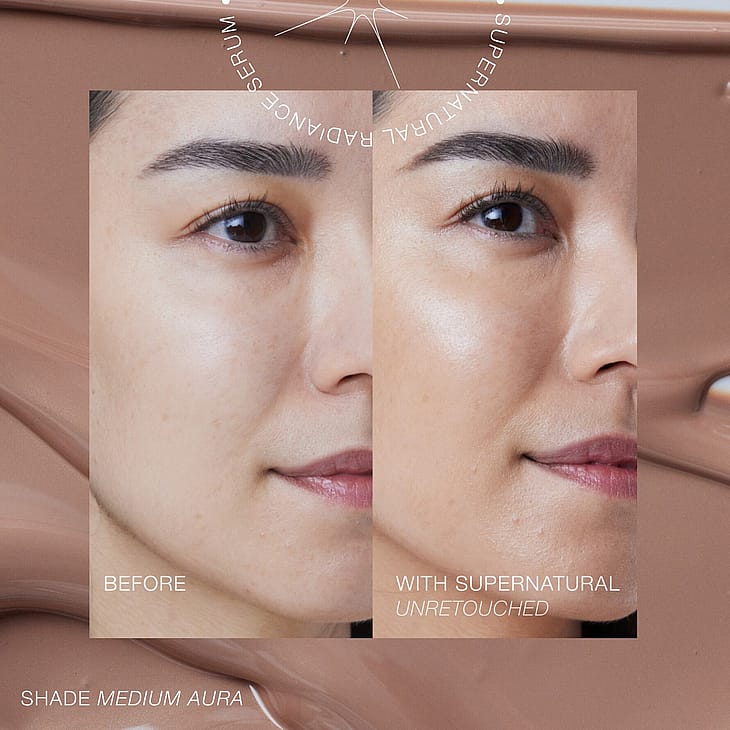 Pigmentoitu aurinkosuoja, jossa on ihonhoitavia ominaisuuksia tasoittamaan ihon sävyä ja häivyttämään virheitä samalla antaen iholle kauniin luonnollisen hehkun. SuperNatural Radiance Serum Broad Spectrum SPF 30 häivyttää epätasaisuuksia korjaavan ""soft-focus"" -efektinsä ja kevyesti pigmentoidun kaavan avulla, joka antaa iholle hehkua samalla kun se suojaa haitallisilta auringonsäteiltä fysikaalisilla suodattimilla. Niasiiniamidi yhdessä kvinoan ja herneen uutteiden kanssa pehmentää ihoa ja lisää sen hehkua sekä välittömästi että pitkällä aikavälillä. Tuote on saatavana kolmessa universaalissa sävyssä, jotka tarjoavat ultrakevyen peittävyyden ja toimivat täydellisesti meikin alla tai yksinään yhdistettynä Uncoverup-peitevoiteen kanssa luonnollisen ""no-makeup makeup"" -lookin saavuttamiseksi.