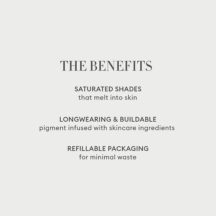 Kosteuttava kermainen poskipuna, joka kirkastaa ja tasoittaa loistavalla väriroiskeella. Tämä pigmenttirikas koostumus sisältää joukon ihonhoitoaineita, jotka parantavat ihon terveyttä jokaisella käyttökerralla: kosteuttavaa skvalaania, suojaavaa E-vitamiinia ja kiiltoa minimoivaa merellistä käymisuutetta. Kestää pitkään ja on rakennettavissa koostumuksella, joka sulaa ihoon ja lisää kiiltoa.