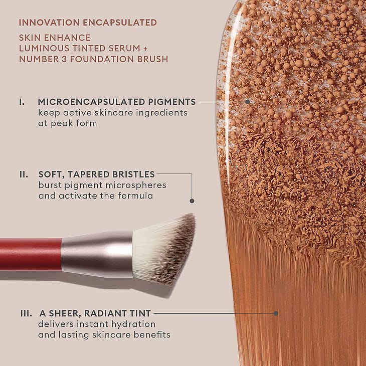 Kulmikas sivellin, joka on suunniteltu tarkkaan ja tasaiseen levitykseen kasvojen ääriviivoja pitkin. Kehittyneellä kuituteknologialla tuotteen optimaalista imeytymistä varten tämä harja on erityisesti suunniteltu levittämään mikrokapseloitua pigmenttiä Skin Enhance Luminous Tinted Serumissa. Laajennetut kuitukärjet räjäyttävät pigmenttimikropallot sekoittaen värin ja luoden luonnollisen, tasaisen lopputuloksen.