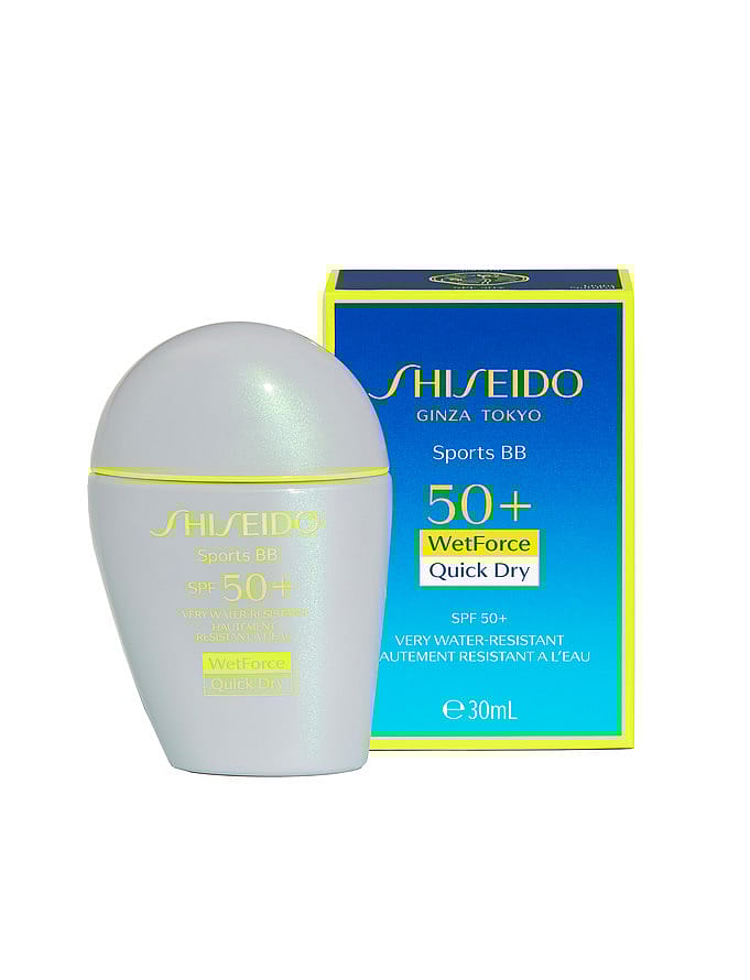 Shiseido on yhdistänyt meikin ja aurinkosuojan tähän Sport BB Cream -voiteeseen. Suojakerroin 50 suojaa tehokkaasti auringolta yhdellä kerroksella ja sävytetty voide luo iholle luonnollisen ja raikkaan lopputuloksen, joka kestää auringossa koko päivän. Quick Dry Technology saa hien kuivumaan nopeasti ja saa meikin kestämään pitkään kuuminakin päivinä. Shiseido Sport BB Cream on vedenkestävä. WetForce-teknologia tekee siitä entistä tehokkaamman hien tai veden kanssa kosketuksissa, joten kevyen meikattu tunne säilyy jopa uidessa.