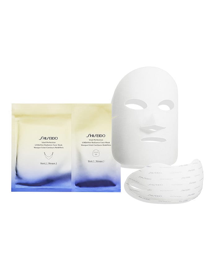 Shiseidon LiftDefine Radiance Face Mask on innovatiivinen, kiinteyttävä kasvonaamio, joka vähentää juonteita ja tummia läiskiä. Kasvojen eri alueet kaipaavat erilaista hoitoa. Shiseido on huomioinut seikan tässä kaksiosaisessa kasvonaamiossa, jonka ominaisuudet on suunniteltu tietyille kasvojen osille. Naamio 1 ehkäisee juonteita ja tummia läiskiä ja tekee ihosta tasaisen ja nuorekkaan näköisen. Naamio 2 kiinteyttää ihoa ja tekee leukalinjasta kimmoisamman ja kiinteämmän. Näkyvän eron huomaa jo yhden käyttökerran jälkeen. Ihosta tulee kauniin heleä.