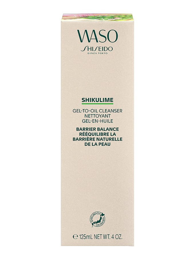 Nuorelle iholle suunnitellun Shiseidon WASO-tuotesarjan SHIKULIME GEL-TO-OIL CLEANSER on 2-in-1-tuote, jossa yhdistyvät meikinpoistoaine ja ihonpuhdistus. Se poistaa helposti vedenkestävän meikin ja puhdistaa, poistaa likaa ja tasapainottaa japanilaisen shikuwasa-hedelmän avulla ihon pH-tasoa niin, että sen luontainen kosteustasapaino säilyy. WASO SHIKULIME GEL-TO-OIL CLEANSER sopii täydellisesti nuorelle ensimmäiseksi ihonhoitotuotteeksi. Sen koostumus on vegaaninen ja se sopii kaikille ihotyypeille.