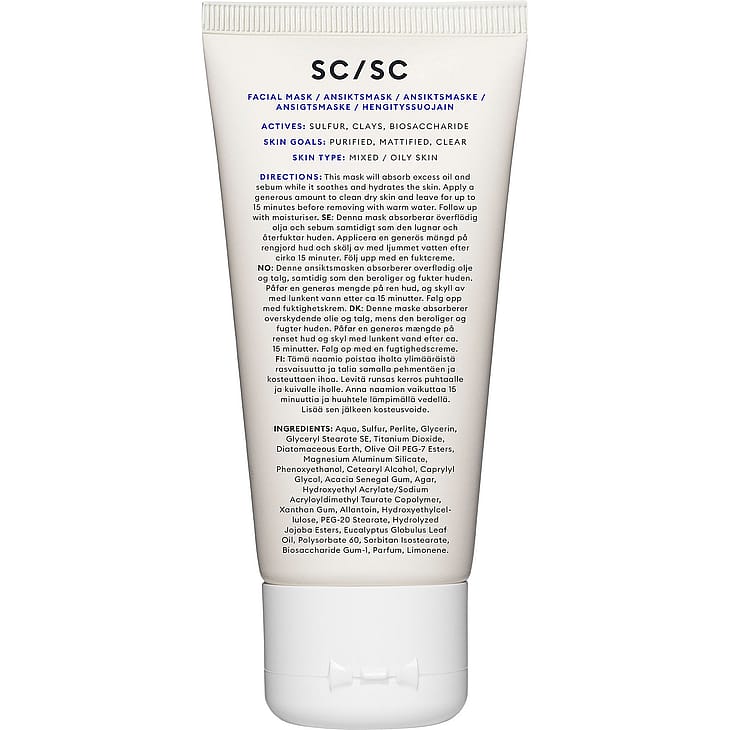 Aqua, Sulfur, Perlite, Glycerin, Glyceryl Stearate SE, Titanium Dioxide, Diatomaceous Earth, Olive Oil PEG-7 Esters, Magnesium Aluminum Silicate, Phenoxyethanol, Cetearyl Alcohol, Caprylyl Glycol, Acacia Senegal Gum, Agar, Hydroxyethyl Acrylate/Sodium Acryloyldimethyl Taurate Copolymer, Xanthan Gum, Allantoin, Hydroxyethylcellulose, PEG-20 Stearate, Hydrolyzed Jojoba Esters, Eucalyptus Globulus Leaf Oil, Polysorbate 60, Sorbitan Isostearate, Biosaccharide Gum-1, Parfum, Limonene. En ingredienslista kan uppdateras och ändras. Vid eventuella uppdateringar hänvisar vi till förpackningen. Vid frågor, Kontakta oss.