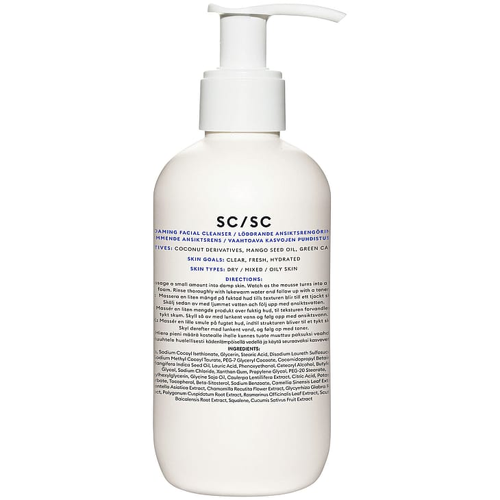 Aqua, Sodium Cocoyl Isethionate, Glycerin, Stearic Acid, Disodium Laureth Sulfosuccinate, Sodium Methyl Cocoyl Taurate, PEG-7 Glyceryl Cocoate, Cocamidopropyl Betaine, Mangifera Indica Seed Oil, Lauric Acid, Phenoxyethanol, Cetearyl Alcohol, Butylene Glycol, Sodium Chloride, Xanthan Gum, Propylene Glycol, PEG-20 Stearate, Ethylhexylglycerin, Glycine Soja Oil, Caulerpa Lentillifera Extract, Citric Acid, Potassium Sorbate, Tocopherol, Beta-Sitosterol, Sodium Benzoate, Camellia Sinensis Leaf Extract, Centella Asiatica Extract, Chamomilla Recutita Flower Extract, Glycyrrhiza Glabra Root Extract, Polygonum Cuspidatum Root Extract, Rosmarinus Officinalis Leaf Extract, Scutellaria Baicalensis Root Extract, Squalene, Cucumis Sativus Fruit ExtractEn ingredienslista kan uppdateras och ändras. Vid eventuella uppdateringar hänvisar vi till förpackningen. Vid frågor, Kontakta oss.