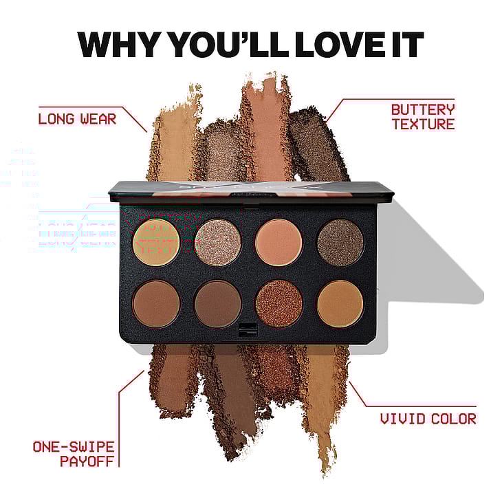 Luomiväripaletti, jonka intensiivisesti pigmentoidut sävyt auttavat sinua luomaan peittäviä ja häivytettyjä silmämeikkejä. Väri säilyttää sävynsä ja on pitkäkestoinen. Levittyy iholle ilman nykimistä ja sekoittuu vaivattomasti.