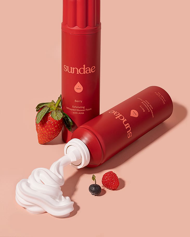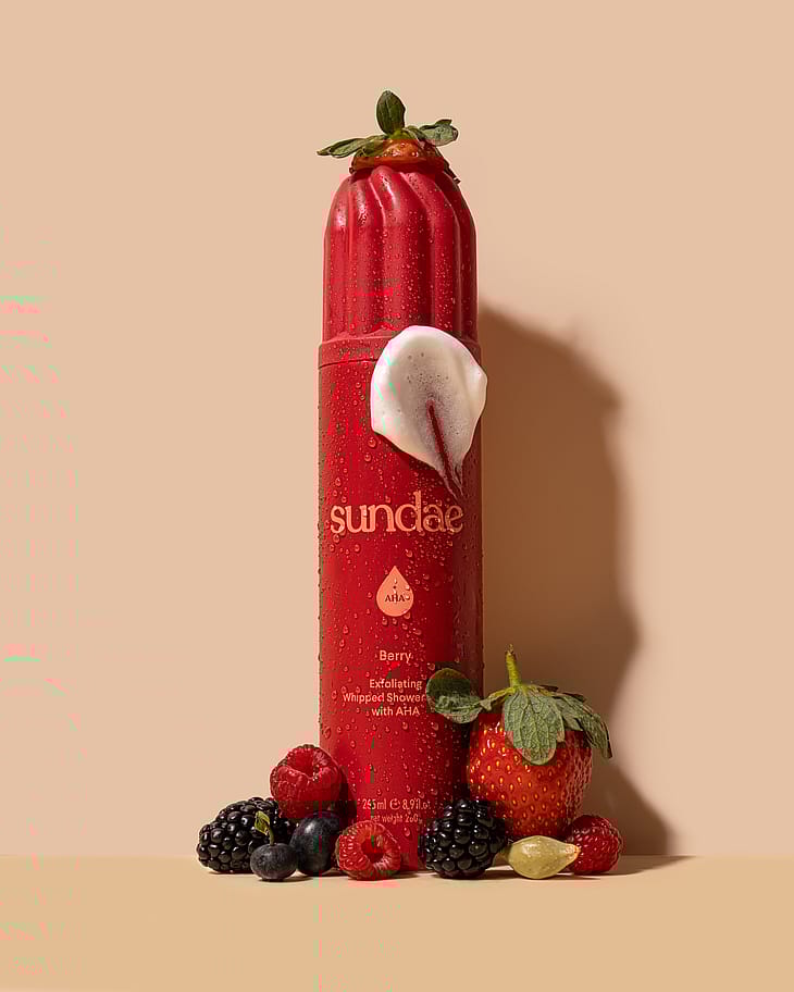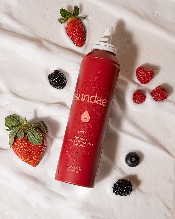 Kuoriva suihkuvaahto (AHA) Etsitkö sitä ylimääräistä hehkua? Silloin ratkaisu on silmiesi edessä! Sundae Berry kuorii ihoa hellävaraisesti AHA-hapoilla, kun taas kosteat ja virkistävät nuotit jättävät ihosi tuoksumaan ja näyttämään upealta!