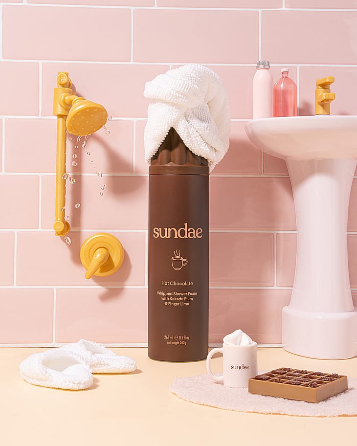 Ihana kuohkea vaahdotettu suihkuvaahto Kakadu Plum & Finger Lime kanssa. Kulta, ulkona on kylmä! Lämmitä itseäsi suihkulla ja kuumalla Sundae Chocolatella. Täyteläinen ja herkullisen lohdullisen kuuman suklaan tuoksunsa ansiosta tämä suihkuvaahto sulattaa kaikki huolesi!
