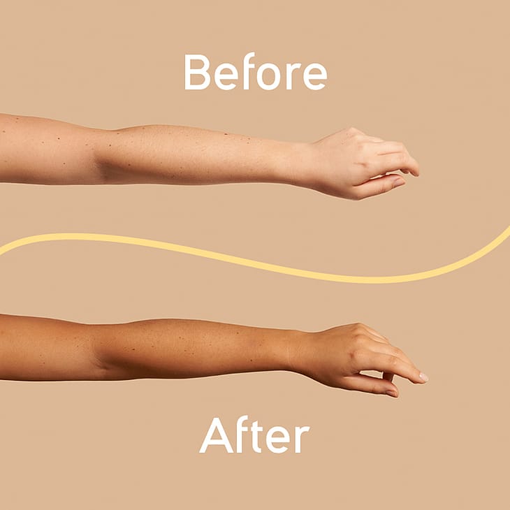 Sävytetty vartalomousse, joka antaa itseruskettavan vaikutuksen 2–4 tunnissa. Suunniteltu tekemään itseruskettavien tuotteiden käyttämisestä helpompaa kuin koskaan aiemmin. Ei jätä raitoja ja imeytyy nopeasti ihoon. Sävytetty vartalomoussemme antaa sinulle heti levitettäessä kullanruskean sävyn, minkä ansiosta sillä on helppo luoda tasainen päivettynyt sävy. Tuotteen innovatiivinen koostumus sisältää useita kosteuttavia aineita, jotka pidentävät ja ylläpitävät rusketusta ja kosteuttavat ihoa saaden aikaan tasaisen ja sileän lopputuloksen. Herätessäsi ihosi on niin kauniin ja luonnollisen sävyinen, että sinulta kysytään, missä olet ollut lomalla.