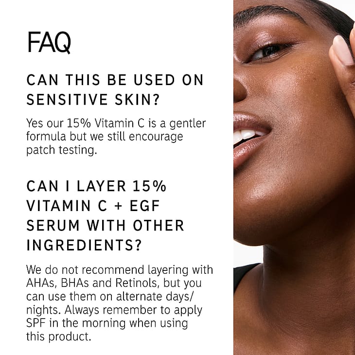 Huippukoostumus tekee ihosta sileän ja terveen näköisen. C-vitamiini yhdessä kasvipohjaisen EGF:n kanssa saa aikaan vaikuttavan aineen, joka auttaa kirkastamaan elotonta ihoa. EGF auttaa uudistamaan ihoa ja tukee ihon luonnollista kollageenin ja elastiinin tuotantoa samalla, kun askorbyyli-glukosiidi muuttuu ihon pinnalla puhtaaksi C-vitamiiniksi ja tekee ihosta kirkkaamman ja tasaisemman.