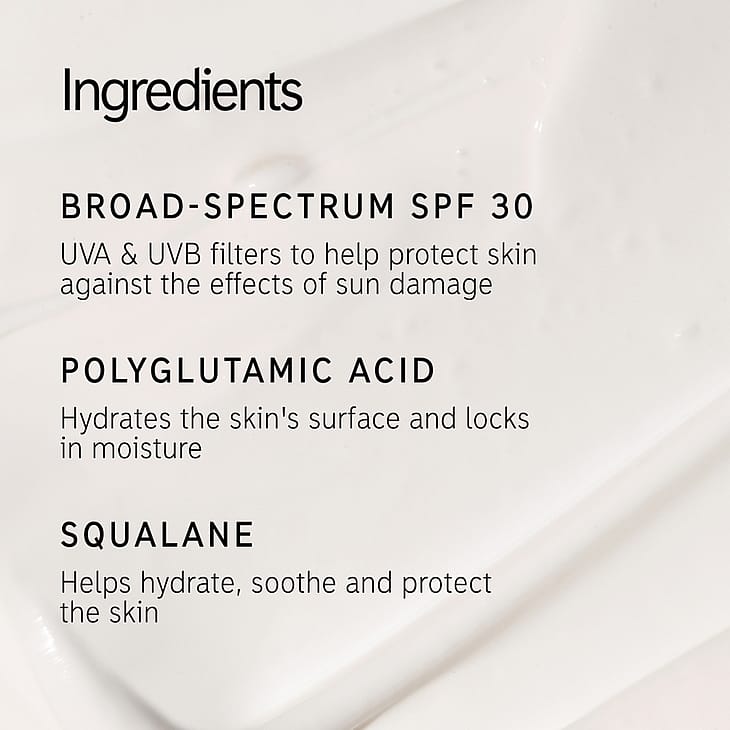 Aqua (Water), Octocrylene, Glycerin, Ethylhexyl Salicylate, Coco-Caprylate/Caprate, Butyl Methoxydibenzoylmethane, Phenylbenzimidazole Sulfonic Acid, Triheptanoin, Saccharomyces Frement, Cetearyl Alcohol, Glyceryl Stearate SE, Tromethamine, Glyceryl Caprylate, Propanediol, C9-12 Alkane, Dilinoleic Acid/Butanediol Copolymer, Sodium Stearoyl Glutamate, Hydroxyethyl Acrylate/Sodium Acrolyldimethyl Taurate Copolymer, Dimethicone, Squalane, Hectorite, Lauroyl Lysine, Hydroxyethylcellulose, Caprylhydrxamic Acid, Dimethiconol, Polysorbate 60, Acrylates/C10-30 Alkyl Acrylate Crosspolymer, Oryza Sativa (Purple Rice) Hull Extract, Castor oil /IPDI copolymer, Phenoxyethanol, Polyglutamic Acid, Sorbitan Isostearate, Camellia Sinensis (Purple Tea) Leaf Extract, Ipomoea Batatas (Purple Sweet Potato) Root Extract, Hydroxyacetophenone, Sodium Benzoate, 1, 2-Hexanediol, Caprylyl Glycol, Lactobacillus Ferment Lysate, Saccharomyces Lysate
