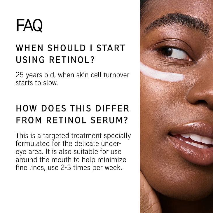 Yökäyttöön tarkoitettu silmänympärysvoide häivyttää hienoja juonteita ja ryppyjä ja antaa tukea ihon herkimmälle alueelle. Retinol Eye Cream sisältää hitaasti vapautuvia A-vitamiinijohdannaisia. Nämä tukevat ihon luonnollista kollageenituotantoa, mutta ovat kuitenkin riittävän hellävaraisia silmänympärysalueelle.