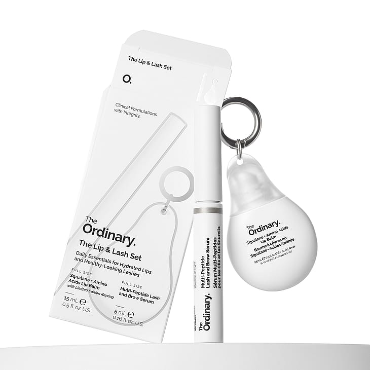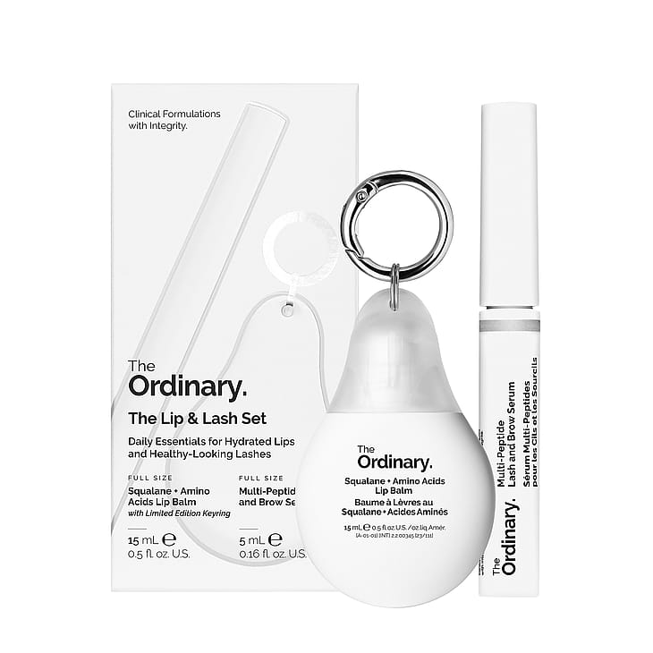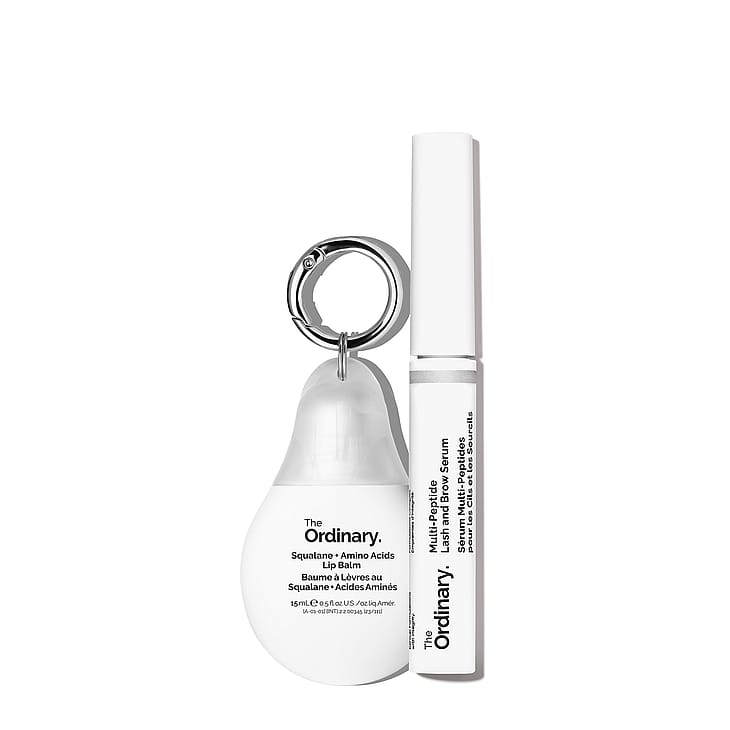 Näin tuote toimii: Multi-Peptide Lash & Brow Serum on vahvistava ripsi- ja kulmaseerumi, jonka 11 aktiiviainesosaa auttavat ripsiä ja kulmia näyttämään tuuheammilta, täyteläisemmiltä ja edesauttavat niiden hyvinvointia. Seerumi sisältää neljän peptidikompleksin ja kasviuutteiden yhdistelmän, jotka auttavat ravitsemaan ja suojaamaan, sekä tuuheuttamaan ripsiä ja kulmia ja parantamaan niiden yleisilmettä. Käytä kahdesti päivässä. Squalane + Amino Acids Lip Balm on The Ordinaryn ensimmäinen monikäyttöinen kosteutta huulivoide, joka auttaa hoitamaan ja lisäämään kosteutta huulille ja saa ne tuntumaan pehmemmiltä. Skvalaanin pehmentävät ominaisuudet antavat välittömästi ja pitkäkestoisesti kosteutta sekä auttavat tukemaan ihon suojakerrosta. Mukana avaimenperä, jossa voit säilyttää huulivoidettasi pitääksesi sen aina käden ulottuvilla – ja saada huulillesi pikakosteutusta liikkeellä ollessasi.