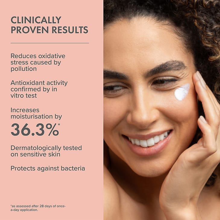 Koe seerumilla täydennetty mineraalinen kosteusvoiteemme, joka tarjoaa laajakirjoisen suojan. Kliinisesti todistetusti kosteuttava monikäyttöinen voide tarjoaa antioksidanttista ja saastumista ehkäisevää suojaa. Se on valmistettu ei-nano-mineraalisuodattimilla, jotka suojaavat ihoa UVA- ja UVB-säteiltä. Kevyt ja nopeasti imeytyvä voide sopii kaikille ihotyypeille.