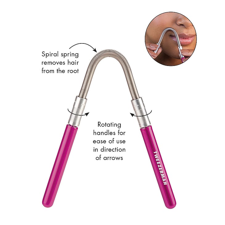 Todellinen must have -väline sinulle, joka haluat poistaa karvoja kaulalta, poskista, leuasta ja/tai huulen yläpuolelta. Innovatiivinen muotoilu minimoi uudelleenkasvua, sillä se vetää karvan pois juurestaan. Ruostumattomasta teräksestä valmistettu ainutlaatuinen varsi ja kierrejousitus poistavat haluamasi karvat – sopii erityisesti silloin, jos et halua käyttää vahoja tai muita karvanpoistoaineita. Pakkaus sisältää myös suositut Tweezerman-pinsetit minikoossa. Vegaaninen.