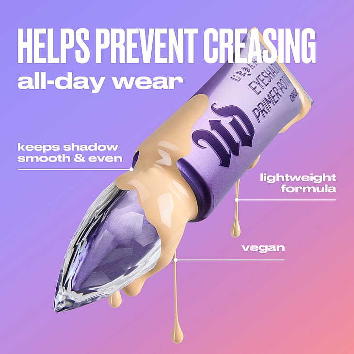 Urban Decay Eyeshadow Primer Potion on luomivärin pohjustusvoide, joka antaa luomivärille intensiivisemmän ja kestävämmän värin jopa 24 tunnin ajaksi ja estää luomivärin kertymistä juonteisiin.