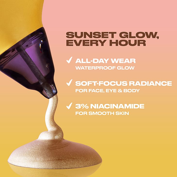 Tämä vedenkestävä nestemäinen korostusväri antaa ihollesi sisältäpäin hehkuvan loiston, joka kestää koko päivän. Formuloitu 3% niasiinamidilla, se tekee ihosi, silmäsi tai vartalosi tuntumaan sileältä ja kosteutetulta. Se on monikäyttöinen all-over illuminator, joka ei tahraa tai siirry, ja siitä tulee suosikkisi hehkulle.