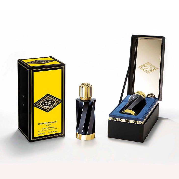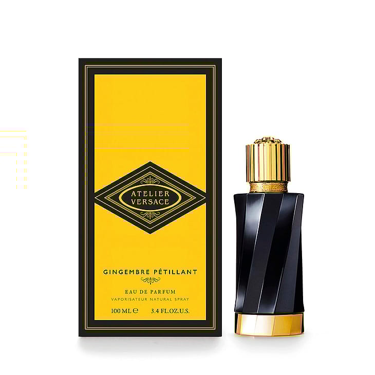 Vuonna 1989 perustettu Atelier Versace keskittyy erityisesti muotoilun, materiaalien ja teknologian innovaatioon ja tutkimukseen. Väsymätön ensiluokkaisten materiaalien valikointi ja ainutlaatuinen käsityö ovat mahdollistaneet kokoelman eksklusiivisia Atelier Versace -nimeä kantavia tuoksuja. Ylellinen kokoelma koostuu 12 tuoksusta, joihin kuuluu niin raikkaita ja kukkaisia kuin puuvivahteisia, mausteisia kuin itämaisiakin tuoksuja. Tuoksut ja pakkaukset on valmistettu huolellisesti käsin. Kevyemmät ja raikkaammat tuoksut on pakattu tyylikkäisiin läpikuultaviin lasipulloihin, kun taas intensiivisemmät tuoksut on pakattu elegantteihin mustiin pulloihin. Jokainen veistoksellinen pullo tulee meanderikuvioidussa, käsinmaalatussa laatikossa, jonka sisäpuolella on Atelier-logolla koristettu peili. Gingembre Pétillant on tumma ja säihkyvä tuoksu, joka on täynnä vaaleita kontrasteja. Laoksesta saatua hehkuvan punaista galangajuurta täydentää valkoisia kukkia tulviva sydäntuoksu. Parfyymin viimeistelee praliiniakordi, joka saa intensiivisyyttä lämpimästä vaniljasta. Atelier Versace – esteettisestä tutkimuksesta ja visionäärisestä muotoilusta satojen tuntien huolelliseen käsityöhön.