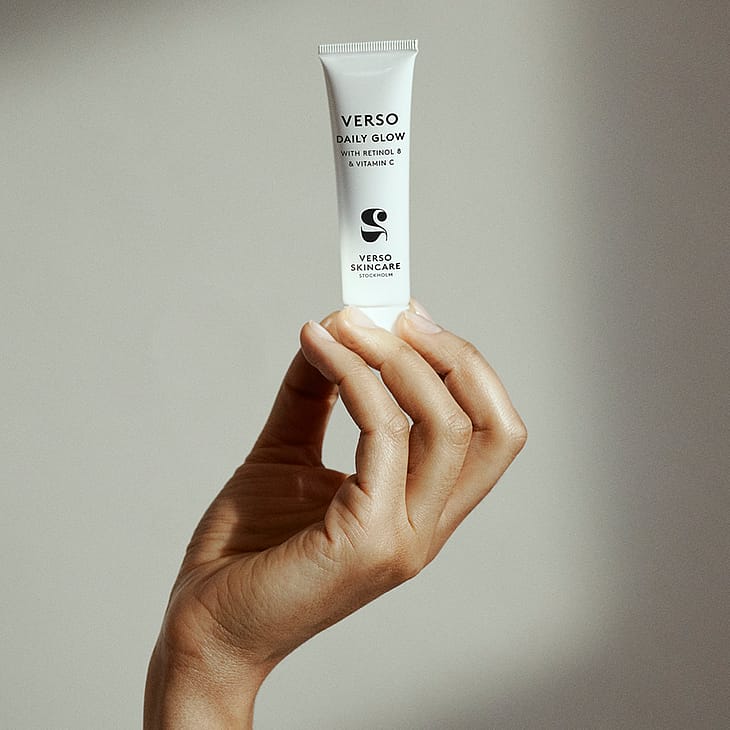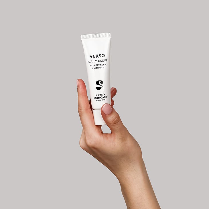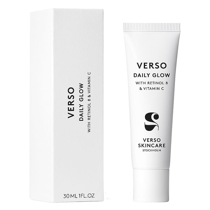 Verso Daily Glow on all-in-one-tuote: energisoiva, vitamiineja sisältävä päivävoide, joka vastustaa väsyneen ja elottoman oloista ihoa välittömästi. Kevyt koostumus kohentaa ihon tekstuuria, kimmoisuutta ja kiinteyttä samalla, kun se silottaa näkyvästi juonteita, tasoittaa ihon sävyä sekä energisoi ja ravitsee ihoa. Kasvovoide antaa iholle pehmeän, kauniin hehkun. Daily Glow sisältää tehokkaita ainesosia: Verson ainutlaatuisen Retinol 8 -A-vitamiiniyhdistelmän sekä niasiiniamidia ja C-vitamiinia, jotka antavat väsyneen ja samean oloiselle iholle elinvoimaa ja häivyttävät juonteita. Hyaluronihappo antaa kimmoisuutta ja kiinteyttä. Ihosta tulee kimmoisa, pehmeä ja se näyttää hyvinvoivalta.