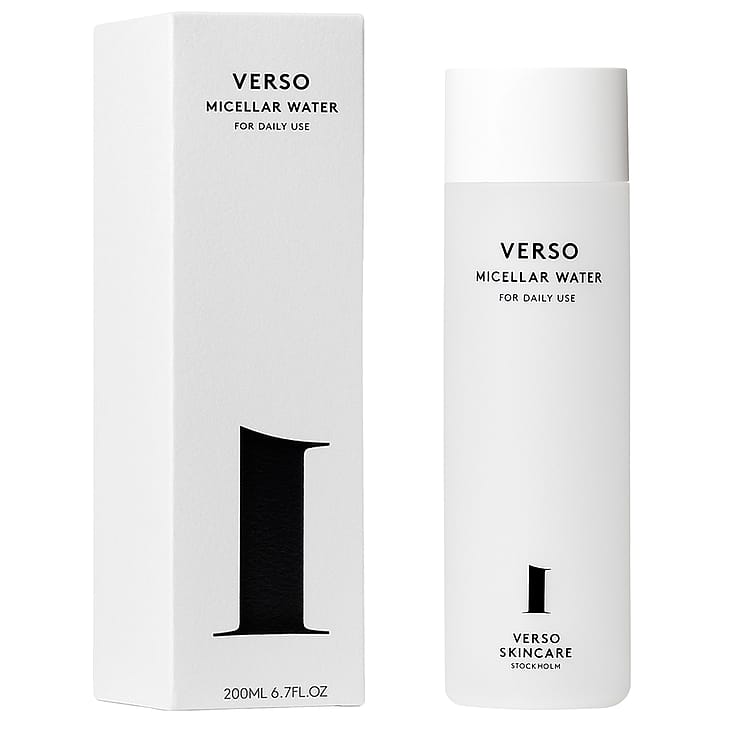 Verso Micellar Water on tehokas ja rauhoittava kasvojenpuhdistus, joka poistaa epäpuhtauksia ja kevyen meikin nopeasti säilyttäen samalla ihon kosteustasapainon. Kirkas koostumus koostuu pienistä pyöreistä molekyyleistä – miselleistä – jotka vetävät puoleensa epäpuhtauksia magneetin tavoin. Verso Micellar Water sisältää niasiiniamidia ja kurkumaa, jotka vahvistavat, rauhoittavat, suojaavat ja kosteuttavat ihoa.