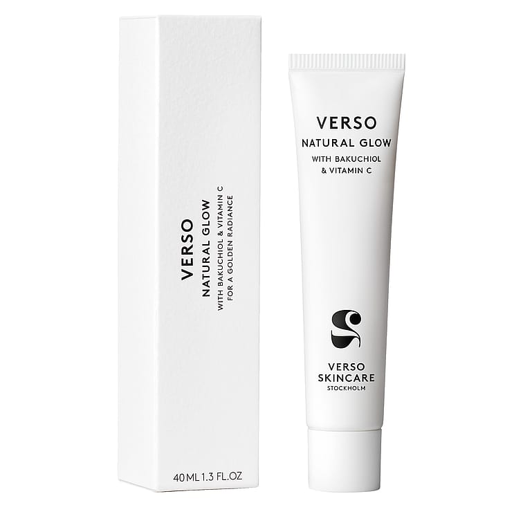 Verso Natural Glow on energisoiva ja hehkua antava päivävoide, joka antaa iholle upeaa hehkua. Bakuchiolia, niasiiniamidia ja C-vitamiinia sisältävä koostumus kosteuttaa, tasoittaa ihon sävyä ja silottaa juonteita sekä auttaa ihoa pysymään raikkaana ja tasapainoisena koko päivän. Bakuchiol on kasviperäinen vaihtoehto retinolille ja vahvistaa ihon luonnollista suojaa yhdessä niasiiniamidin ja C-vitamiinin kanssa. Ainesosat vastustavat ihon ennenaikaista ikääntymistä ja ympäristövaikutuksia. Synteettinen kiille antaa välitöntä hehkua, C-vitamiini auttaa tasoittamaan ihon sävyä ja hoitaa ihoa antioksidanttisten ominaisuuksien ansiosta. Hyaluronihappo antaa iholle näkyvää täyteläisyyttä ja kiinteyttä. Lopputuloksena on hyvinvoiva, kimmoisa ja elinvoimainen iho, jolla on kaunis kullanhehku.