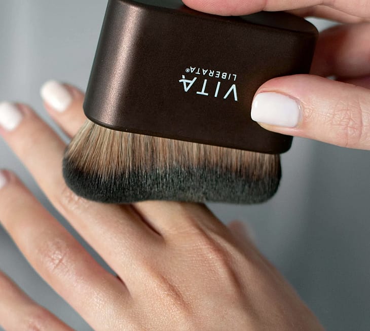 Body Brush on täydellinen lisävaruste virheetöntä itseruskettavaa tai vartalomeikkiä varten. Vita Liberata Tanning Body Brush -siveltimessä on ihanteellinen tiheys, rakenne ja ammattimainen muotoilu, joiden ansiosta se mukautuu vartalon luonnollisiin muotoihin ja saa aikaan täydellisen levityksen ja lopputuloksen. Meikkiasiantuntijoiden luoma salaisuus tuotteiden levittämiseen kasvoille, kaulalle, käsille ja jaloille. Pestävä, uudelleenkäytettävä. Meikin ja itseruskettavan levityssivellin. Voidaan käyttää sekä kasvoille että vartalolle. Luo tasaisen ja virheettömän lopputuloksen.