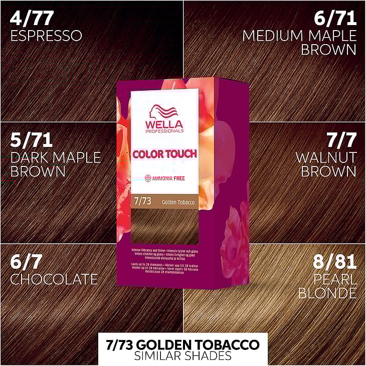 Color Touch on kestosävyte, joka antaa kiiltoa ja kirkkaan värituloksen. Ammattimainen hiusväripakkaus on helppo levittää kotona ja se antaa tuloksen vain 20 minuutissa. Käytä Color Touch -väriä peittämään tyvikasvu ja häivyttämään harmaat jopa 50 %:n peittävyydellä. Väri antaa 63 % enemmän kiiltoa ja jopa 57 % enemmän monivivahteista väriä k äsittelemättömiin hiuksiin verrattuna. Hellävarainen, ammoniakiton ja silikoniton koostumus sisältää ainutlaatuista Light²Color Complex -yhdistettä, joka antaa intensiivisen, eloisan ja hehkuvan värin jopa 28 pesun ajaksi.