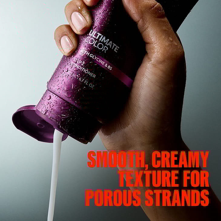 Wella Professionals Ultimate Color Conditioner on hoitava hoitoaine värjätyille hiuksille, joka säilyttää hiusvärin kiillon ja vahvuuden. Hoitoaine silottaa hiusta ja jättää sen pehmeäksi ja silkkiseksi samalla, kun se vahvistaa hiusta ja vähentää hiusten katkeilua jopa 86 %*. Sisältää glysiiniä, metallinpoistajaa ja Pro-Vitamiini B5:ttä, jotka suojaavat vapailta radikaaleilta, lukitsevat kosteuden ja auttavat säilyttämään pigmentit pitkäkestoisen värin takaamiseksi.