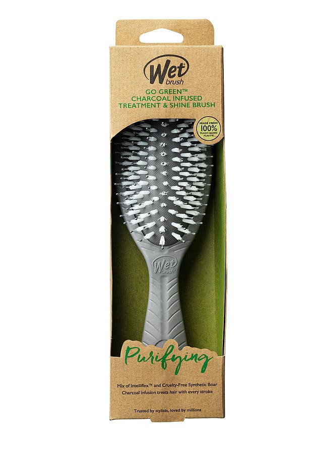 Den biologiskt nedbrytbara Wet Brush Go Green Treatment and Shine är den perfekta hårborsten för ostyrigt och trassligt hår. Borstens syntetiska IntelliFlex-borst® är idealiskt mjuka och elastiska på tovor precis rätt utan att skada håret. Borsten rör sig lätt i håret och smeker hårbotten med en masserande känsla. Som en unik egenskap innehåller kudddelen av borsten vattenmelonfröolja som vårdar håret, vilket mjukar upp och låser in fukt i håret. OBS! Hög temperatur kan skada borsten. Rekommenderas inte för användning vid föning.