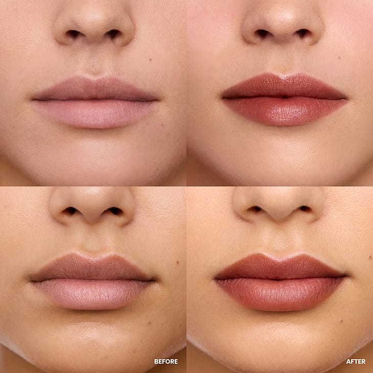 Huipputeknologinen vegaaninen koostumus antaa kauniin värin huulille ilman tarvetta korjailuille – väri kestää koko päivän samalla kun huulet pysyvät kosteutettuina ja pehmeinä tuntikausia.