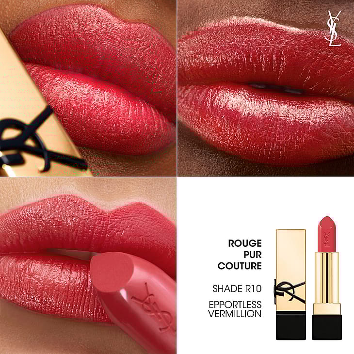 Rouge Pur Couture tarjoaa täyden peittävyyden kevyessä ja voidemaisessa koostumuksessa, joka sulautuu ihoon ja antaa couture-satiinimaisen lookin. Saatavana jopa 40 couture-sävyä neljässä eri väripaletissa, jotka sopivat jokaiseen mielialaan. Pakkaus on suunniteltu kestävän kehityksen periaatteiden mukaisesti. Täyttöpakkauksia on saatavana neljässä eri värissä: rouge muse, nude muse, orange muse ja pink muse.