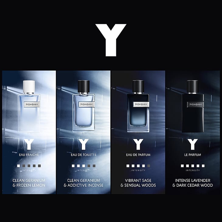 Y-mies: Luova ja itseoppinut. Y NEW EAU DE TOILETTE vangitsee uuden, intiimimmän hetken Y-miehen saagassa, jota ilmentää Y:n ikoninen lähettiläs Lenny Kravitz. Peloton ja kokeilunhaluinen, joka elää omaan tahtiinsa. Hän on täysin tyytyväinen itseensä. Hänen mottonsa: Jotta tietäisit minne olet menossa, sinun on tiedettävä mistä olet kotoisin. Löydä uudelleen juuresi. Palaa takaisin äänien, tuntemusten ja tuoksujen maailmaan, joka sinut muovasi. Miksipä ei? Erittäin raikas ja intensiivisen seksikäs tuoksu, joka täyttää itsensä. Uusi Y EAU DE TOILETTE on mineraalisen puumainen tuoksu, joka luo kontrastia Ranskan Provencen raikkaalle laventelille ja aromaattiselle salvialle. Madagaskarin bourbon-sydäntuoksussa on YSL BEAUTYlle valmistettu raikas, vehreä ja kurjenpolven sydän, joka on valmistettu YSL BEAUTYlle. Raikas tuoksu, jossa tuntuu aistikkaan puun, seksikkään ambran ja riippuvuutta aiheuttavan suitsukkeen lämpöä. Uusi intensiteetin taso. Uusi, puhtauden ja seksikkyyden aalto. Y EAU DE TOILETTE on virkistävä, tehokas ja pitkäkestoisesti vaikuttava suihke, jonka teho kestää peräti 12 tuntia ja joka todella huomataan. Helppo käyttää. Helppo rakastaa. Koska se on viileämpi, kuumempi ja kestävämpi kuin koskaan.